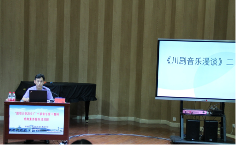 2021年07月26日由我院承办的“国培计划2021”—小学音乐骨干教师戏曲素养提升(A320)培训班,于7月24日上午8:30在湖南第一师范学院音乐舞蹈学院曼伦音乐厅继续开班。由来自重庆市国家一级演员、作曲家、重庆市音乐家...