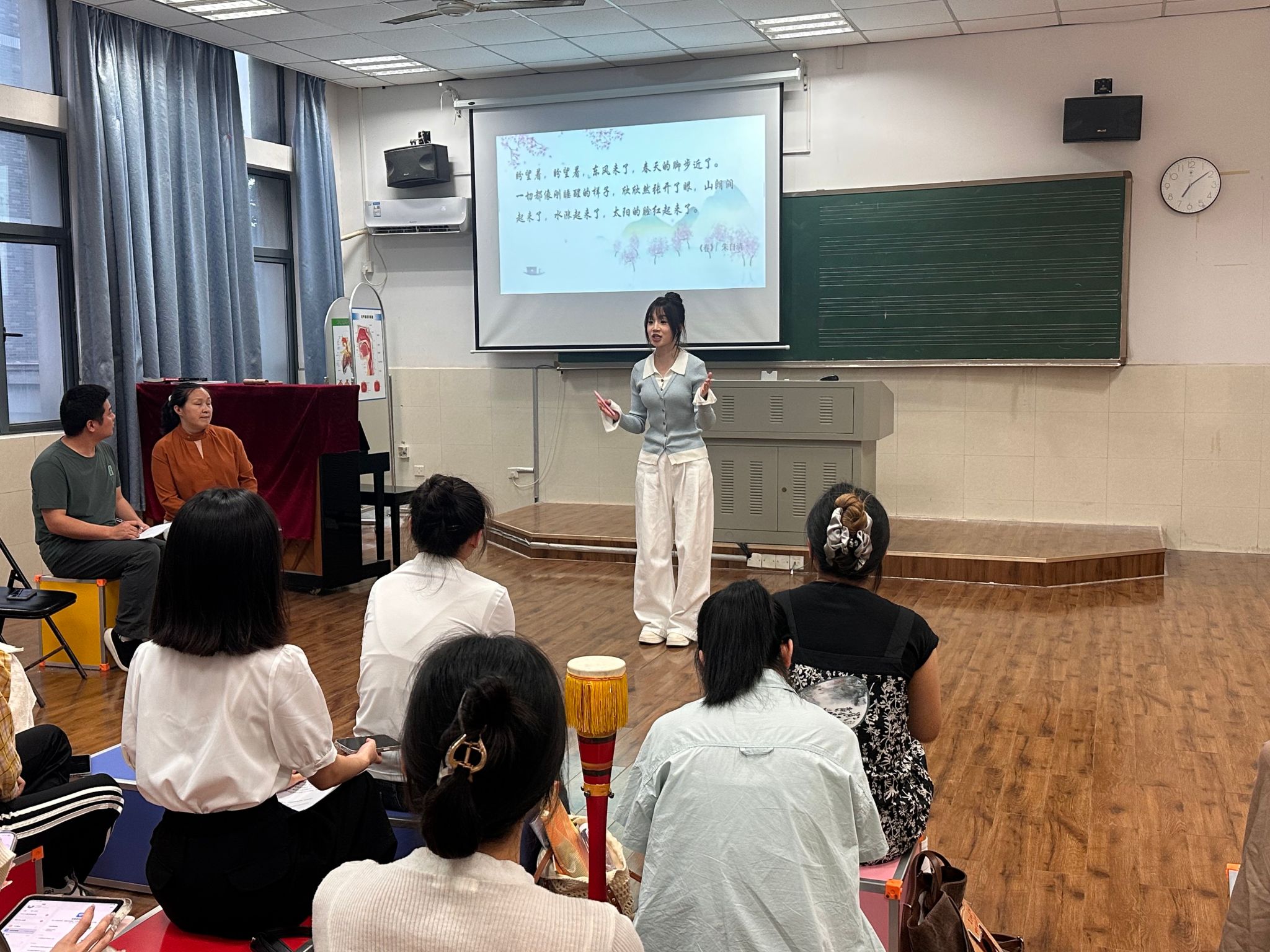 比赛现场,选手们紧扣音乐学科核心素养,创新教学形式:中学组选手通过《青春舞曲》的节奏创编活动,将乐理知识与实践体验相结合;小学组选手以《采蘑菇的小姑娘》为载体,融入奥尔夫教学法,通过打击乐器合奏提升课堂互动性。评委组认为中学组《梁祝》片段教学“教态自然流畅,五线谱板书规范美观,重难点突破方式巧妙”;小学组《故乡的小路》教学设计“情境创设贴近小学生认知,课件动画与教学内容契合度高”。