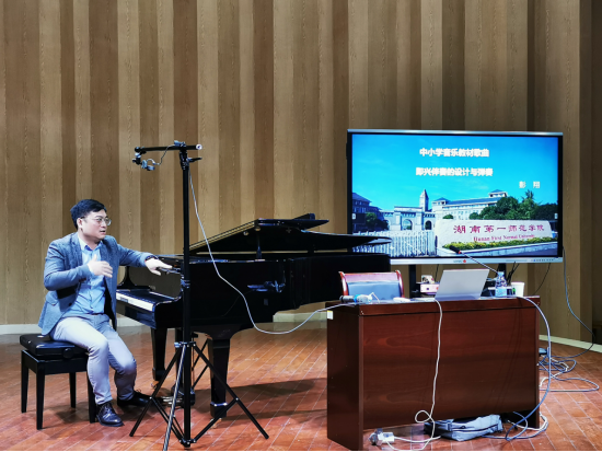 此次讲座钢琴教研室邀请了中国音乐家协会会员、涉外经济学院骨干教师、湖南省青年高校教学能手、第九届中国金钟奖流行演唱湖南赛区金奖获得者彭翔老师,针对我院19级音乐学、音乐学(初招)专业的学生,围绕中小学音乐教材歌曲的钢琴即兴伴奏有关知识、方法和实践进行了一场生动的学术讲座。