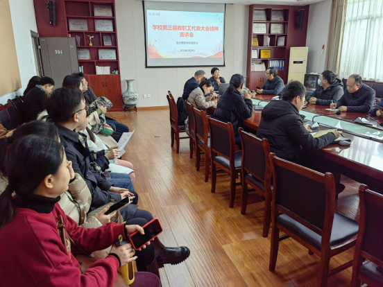 3月28日下午,学院组织开展了主题为《全面学习贯彻“教代会”精神,凝心聚力推进学院建设上台阶——学习学校第三次教代会会议精神》的集中学习活动。学院党委书记邹华秀作专题宣讲,学院全体教师参加会议。