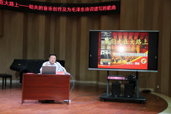在讲座中,魏教授生动的讲述了李劫夫的生平事迹、音乐创作及其教育思想,让大家对这位可敬的音乐家有了更深刻的认识,并领略到他带有鲜明民族特色、兼容并蓄、词曲交融、简洁质朴的创作理念及教育思想,让在场的老师、同学们领悟到到红色音乐歌曲的艺术魅力。