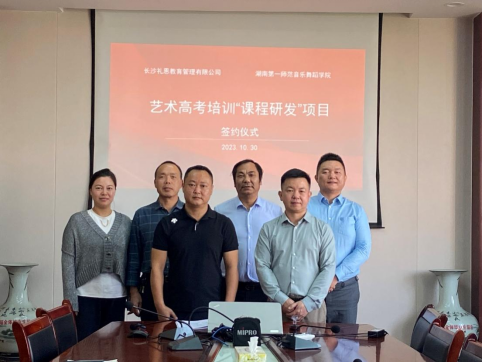 签约仪式前,音乐舞蹈学院院长张应华致欢迎词,并介绍了音乐舞蹈学院的历史、特色以及学科优势。针对本次“艺术高考课程研发项目”,张应华院长详细介绍了学院的师资力量与条件保障,针对文化课程板块、音乐课程板块以及舞蹈课程板块进行相关课程的研发与实践提出了初步设想与规划。礼恩教育管理有限公司负责人赵飞在听取了张应华介绍后表示,非常感谢“湖南一师”能够在“课程开发”上提供高水平的支持,而且希望能够拓宽其他合作面向,尤其在教育实习、毕业生就业等方面开展长期合作。