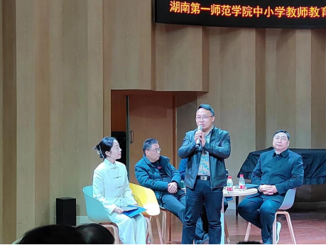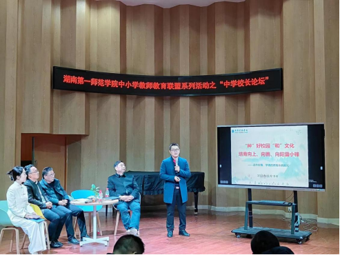 为深化本科教育教学改革,推进人才自主培养高质量发展,我院于2023年12月15日下午15:00在曼伦音乐厅顺利举办“协同育人——中学校长论坛”。此次论坛由现代教育发展学院主办,我院承办。应邀出席本次论坛的五位主讲嘉宾分别是:长沙市望城区教育局副局长刘勇、长郡月亮岛学校校长张平、周南望城学校校长刘红卫、南雅望城学校校长卢明、望城向阳中学校长杨青。学校城南书院院长张瑞智,教务处副处长汤希玮,现代教育发展学院副院长张俭明、办公室主任周丽敏,学院党委书记邹华秀、院长张应华、副院长刘炜、副院长郭宇等领导,以及学院部分师生共同参加了此次论坛。论坛主持人由我院副教授杨思思担任。