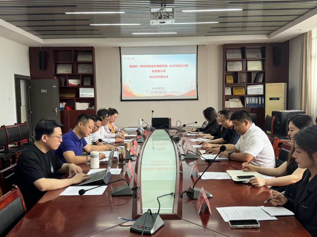2024年5月31日,湖南第一师范学院音乐舞蹈学院与长沙市田汉大剧院有限公司展开校企合作座谈,旨在促进双方在人才培养、艺术创作、学术研究、服务社会等方面的合作与交流。