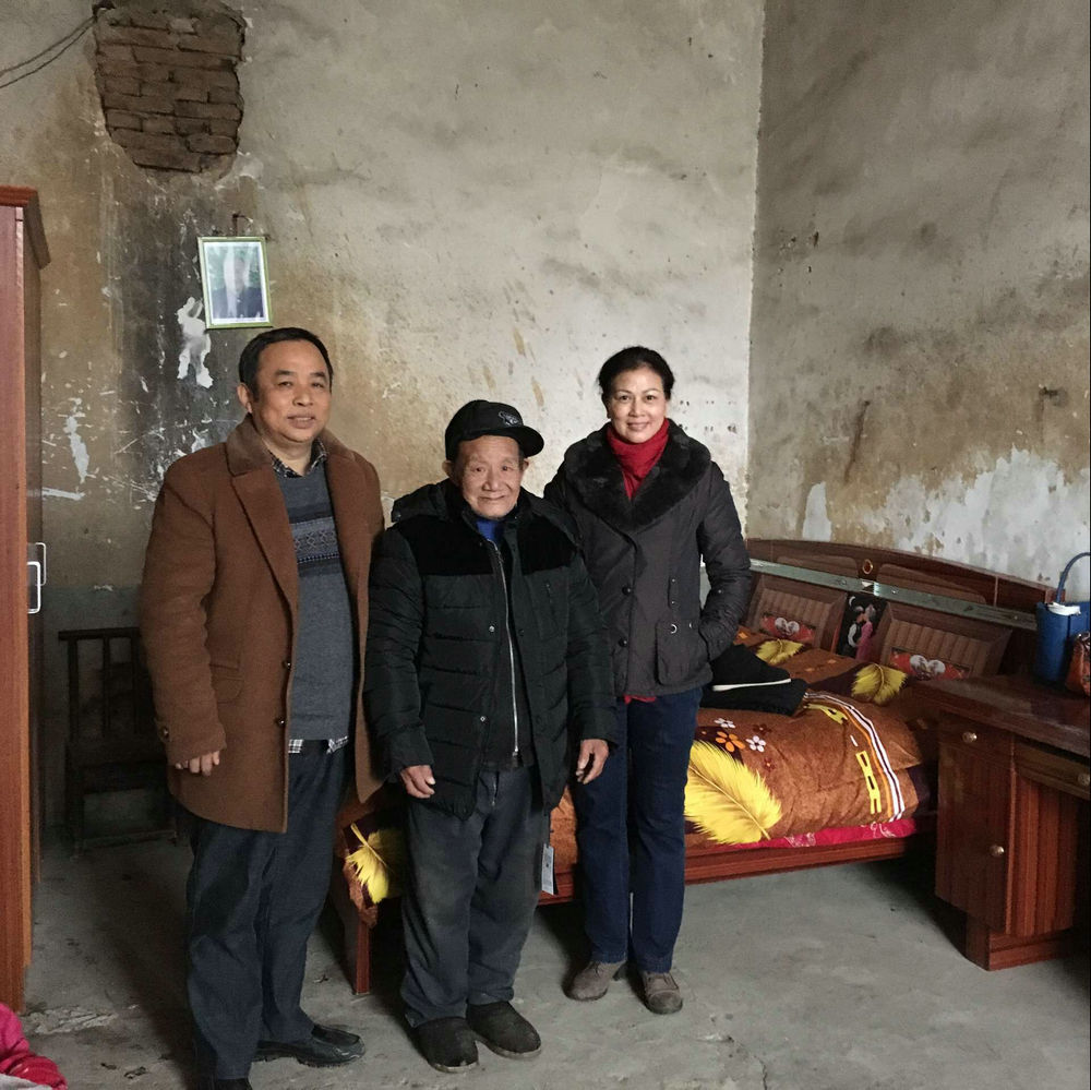 我校驻白泥村扶贫工作队赵小群、鲁云生、村支部书记张秋水热情接待了谭书记一行,扶贫工作队队长兼白泥村党支部第一书记赵小群简单介绍了扶贫点的基本情况、扶贫规划及已开展的各项工作。然后,一行人来到我院帮扶对象-五保户王东华老人家中,为老人送去大米、食用油和电饭煲,为他添置了新棉衣、棉裤、棉鞋、棉被。考虑到他家没有一样像样的家具,一行人又到就近的家具店买了新床、衣柜及桌子,并一起动手帮助他清理破旧的家具和衣物,重新把家布置好。随后,一行人又驱车赶往荷叶镇敬老院看望另一位帮扶对象曾建和老人,与他亲切谈心,了解他的生活情况及身体状况,并送去慰问金。