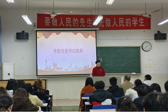 邹华秀书记致辞,她对全体学员提出了三点希望:一是坚定理想信念,培根铸魂,在深化理论学习上下功夫;二是提升综合素质,赋能体质,在提升工作能力上下功夫;三是勇担时代使命,担当作为,在转变工作作风上下功夫。学工办主任杨淇雅宣读学员守则,学生会主席周逸文代学员发言。