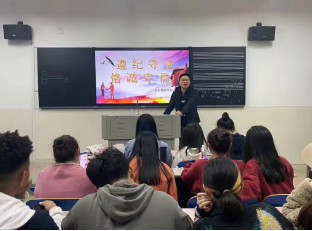 辅导员深入班级、寝室大力召开“遵纪守法、恪守诚信”教育,重点讲清楚不讲诚信问题的严重性,讲清楚诚信为人做事的重要性,讲清楚遵纪守法的必要性——这个“三个讲清楚”让学生明白违法违纪必须追究经济责任、法律责任。班会后,各班学生在“遵纪守法,恪守诚信”承诺书上逐一签名。