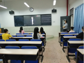 按照疫情防控要求,学生们保持一定间隔距离,坐在教室里观看了学校录制的《返校复学疫情防控预演》和复旦大学附属华山医院感染科主任张文宏教授专门为全国大学生录制的《新冠肺炎防控第一课》。视频学习结束后,部分学生介绍了疫情期间在家的网课学习和防疫办法,个别同学还分享了自己在家乡加入防疫志愿者队伍的感受。这次主题班会同学们对“这次疫情是对国家综合实力的考验”、“这次疫情是一次惨痛而深刻的生命教育”有了更深刻的认识。(邓志刚)
