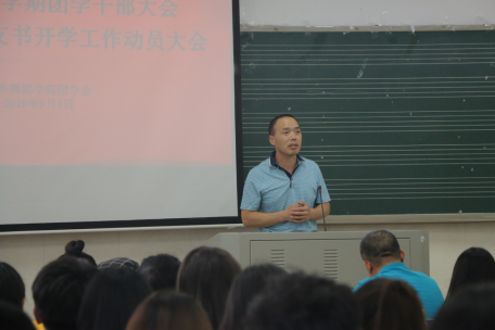 谭顺来书记介绍学院领导班子的调整和分工情况,重点介绍了学院有关硕士点申报、本科审核评估、教师资格证考试这“三大攻坚战”的开展情况,他希望全体学生干部继续保持开拓进取、团结奋进的优良传统,在工作中敢于担当、乐于奉献,在“三大攻坚战”中严格要求自己,做好学生的表率。
