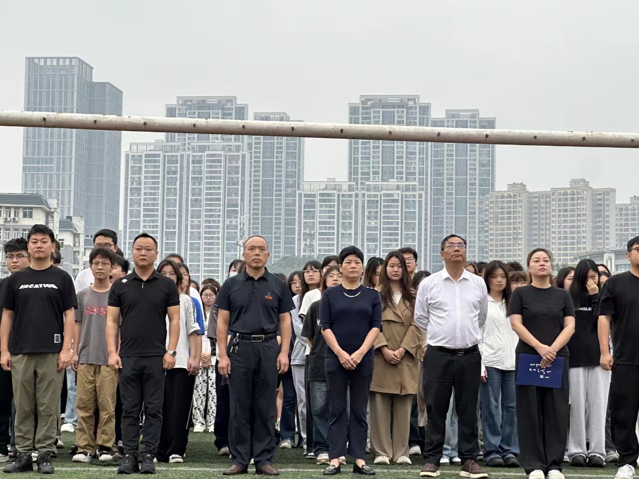 6月3日上午7时,我院在田径场隆重举行升旗仪式,院党委书记邹华秀、院长张应华、副书记谭小红、副院长郭宇、副院长刘炜、全体辅导员及900余名学生参加仪式。