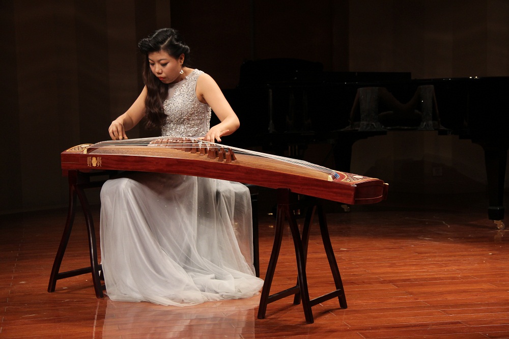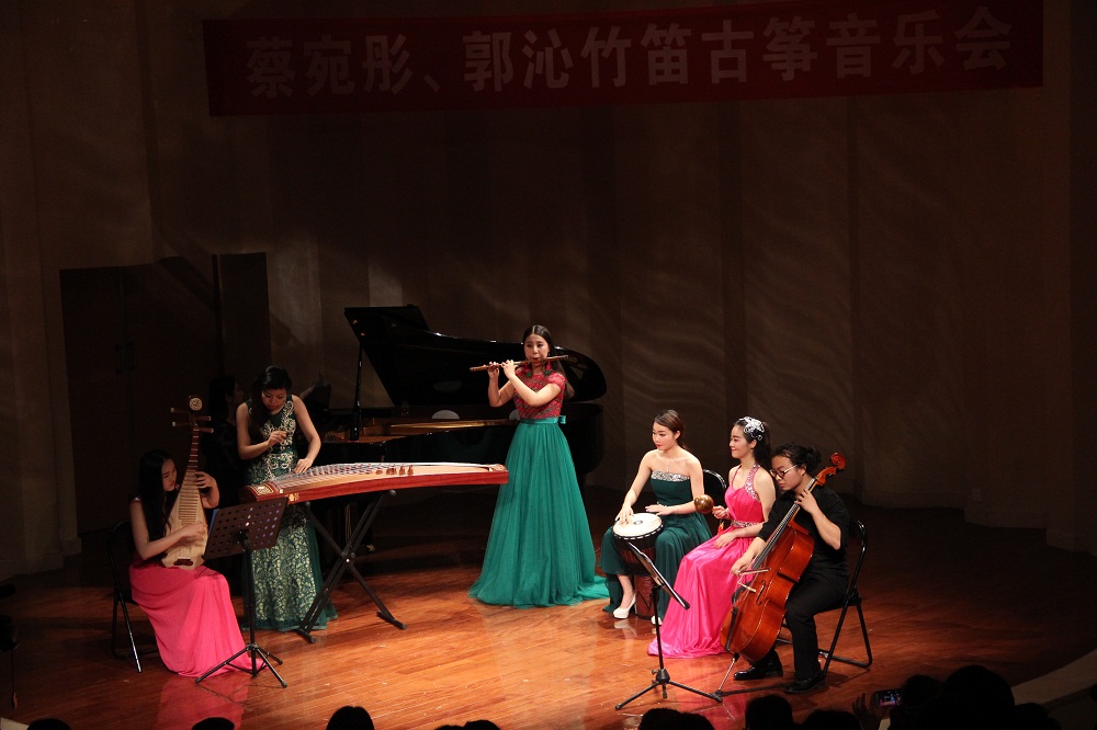 当晚音乐会形式多样,有蔡宛彤的竹笛独奏、郭沁的古筝独奏、也有竹笛和古筝合奏。