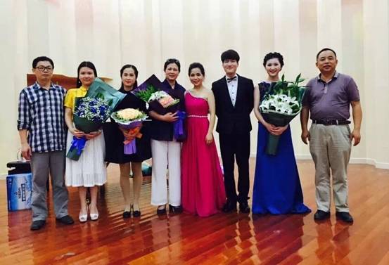 2015年6月5日7点,我院廖文伟、陈冰莹、梁芙玲在音乐厅举办了本科毕业声乐音乐会,指导老师为谭顺来教授与李小君教授。本次音乐会考试评委由范华继、何念忠及肖兵三位老师担任,廖小芒、崔思渠、龙亚君,周芳等老师也莅临了本场音乐会。
