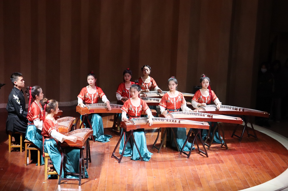 器乐展示部分由钢琴独奏《肖邦—谐谑曲No.2Op.31》、单簧管五重奏《瑶族舞曲》、古筝合奏《蹀马倾杯舞千秋》及笛子独奏《春到湘江》组成,不同曲风、不同乐器的节目展示了器乐方向学生多元、丰富的音乐表现力。