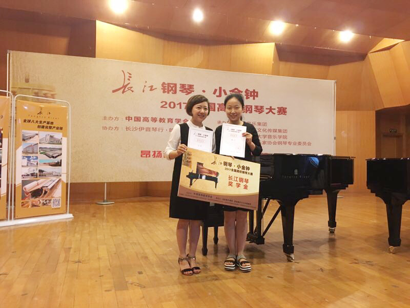 6月24日,由中国高等教育学会主办的“长江钢琴·小金钟2017全国高校钢琴大赛”湖南预选赛在湖南师范大学音乐学院落下帷幕。我院教师樊小欢与徐稳老师合作参加了此项赛事的四手联弹及双钢琴组比赛,最终两人以优异的表现荣膺该组金奖(第一名)。