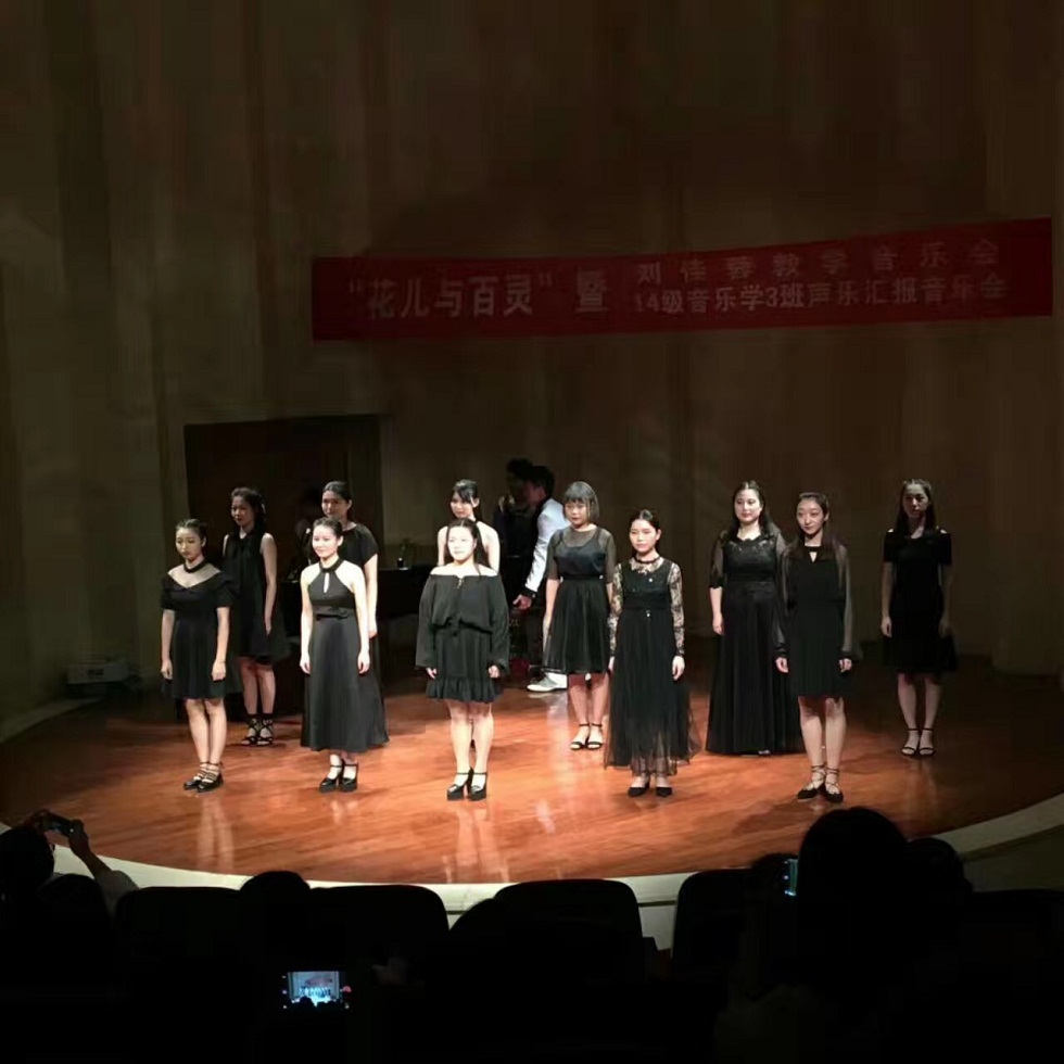 2017年5月3日晚,由我院刘佳蓉老师指导的“花儿与百灵”主题音乐会在艺术楼原声音乐厅隆重举行。本场晚会由谭娜老师担任艺术指导,14级音乐3班与669班承办。
