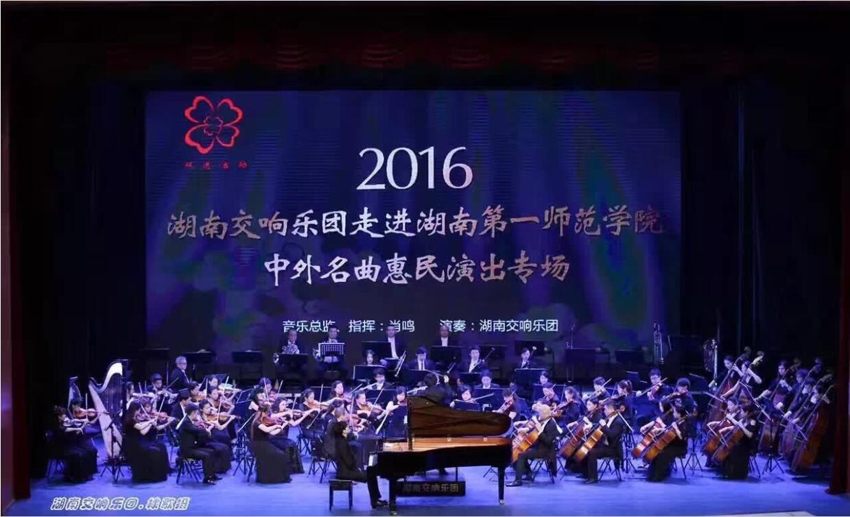 2016年9月27日晚,由湖南省文化厅主办、湖南省演艺集团与我院承办的“2016湖南交响乐团走进湖南第一师范学院中外名曲惠民专场音乐会”在我校音乐剧场成功举办。