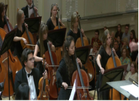 我院索青老师作为湖南受邀的演奏家中一员,在两场演出中担任本届俄罗斯柴可夫斯基国际青年交响乐团大提琴声部副首席,与所有演奏家们共同奏响吕其明所作中国交响乐作品《红旗颂》、俄罗斯柴可夫斯基《第四交响曲》、《天鹅湖》、《胡桃夹子》选曲、肖斯塔科维奇《螺栓》组曲、拉赫马尼诺夫《练声曲》等经典曲目,向世界展示了中国的音乐魅力和实力,也与俄罗斯演奏家结下深厚友谊。