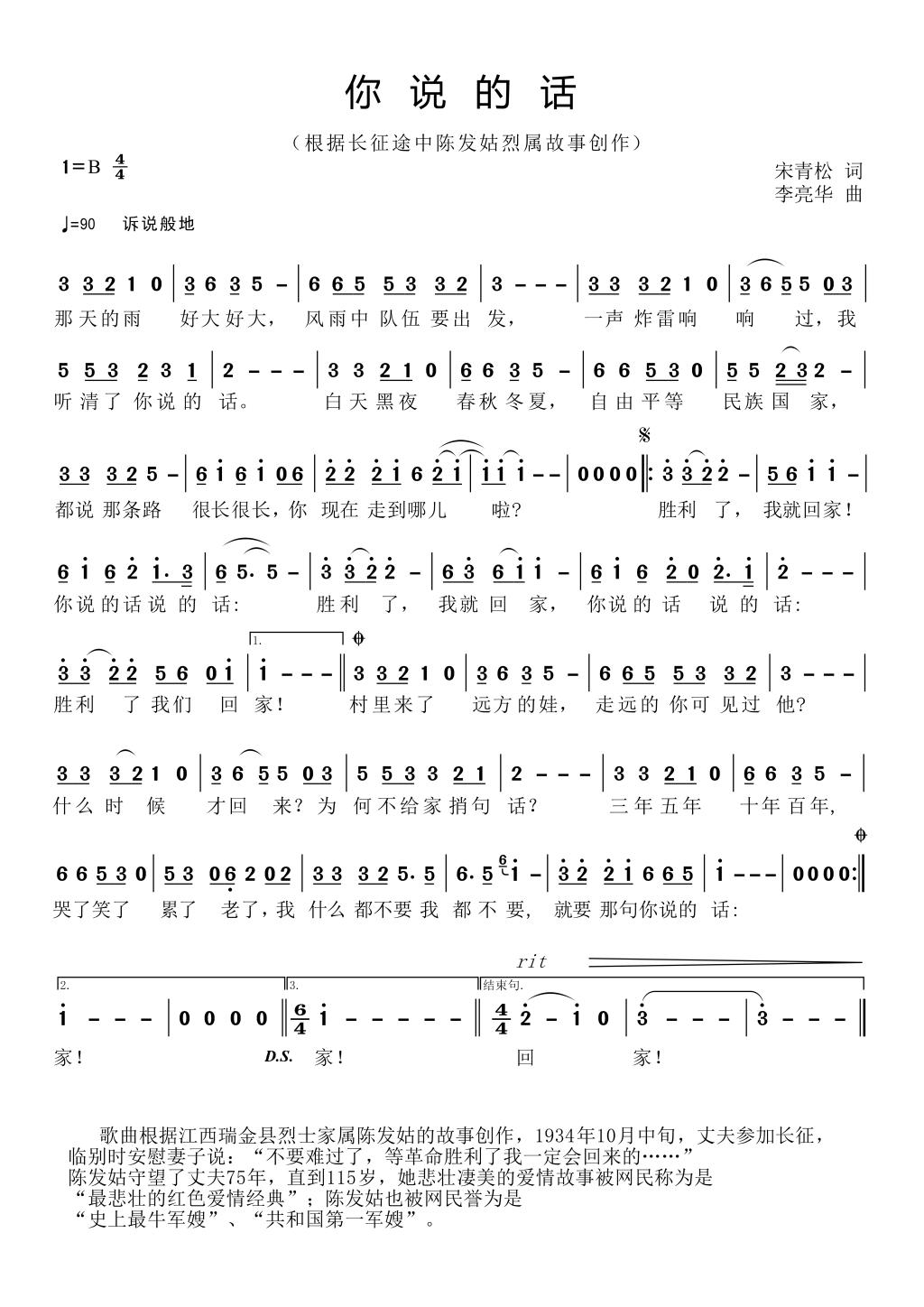 作曲作品:《你说的话》李亮华曲、国家交响乐团宋青松词、霍元圆唱