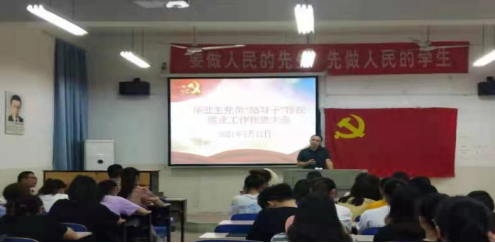 为积极配合好学校组织的2021届毕业生夏季大型双选会,进一步推进我院2021届毕业生更充分更高质量的就业,5月25日晚7:00,我院在鹤鸣楼北303教室举行了毕业生党员“结对子”帮扶就业工作推进会,参加会议的有院党总支副书记谭小红、院学生党支部书记邓志刚及我院2021届毕业班全体学生党员。会议由就业专干曾亚斌主持。
