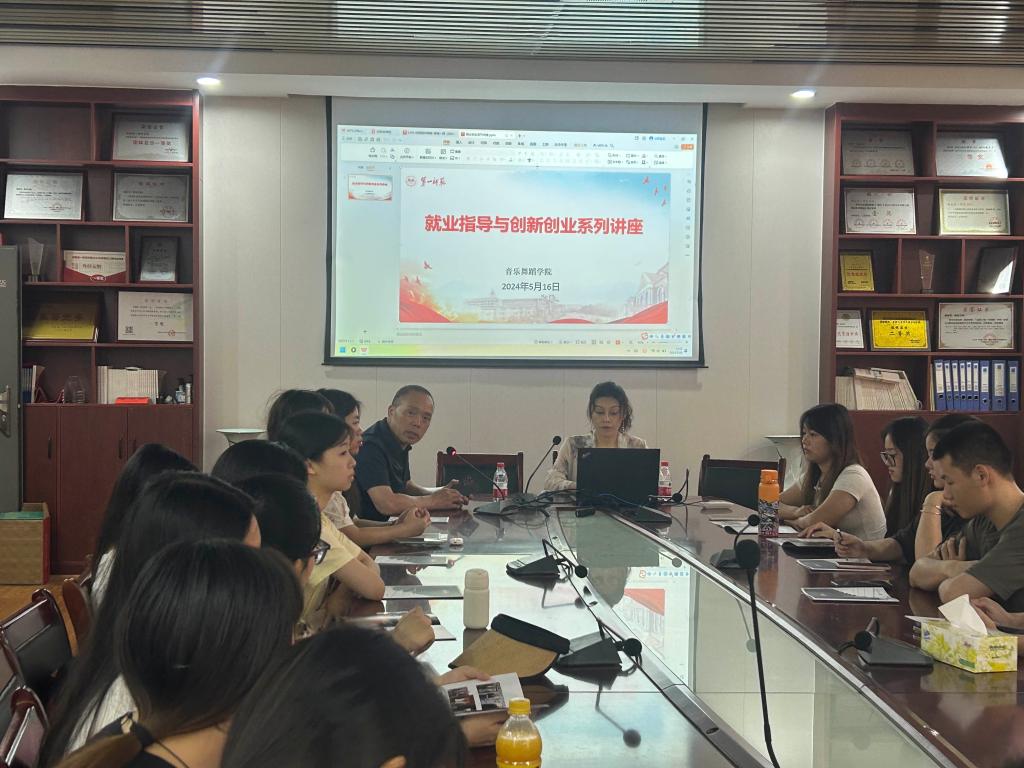5月16日,刘健艺术钢琴学校人力资源总监江小渔应邀来我院举办教师招聘宣讲会,我院2020级主修钢琴的毕业生参加会议。院党委副书记谭小红主持会议。