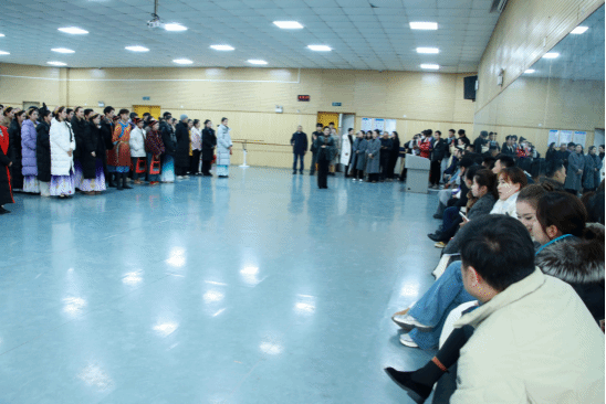 舞蹈专业汇报后企业代表与师生合影留念