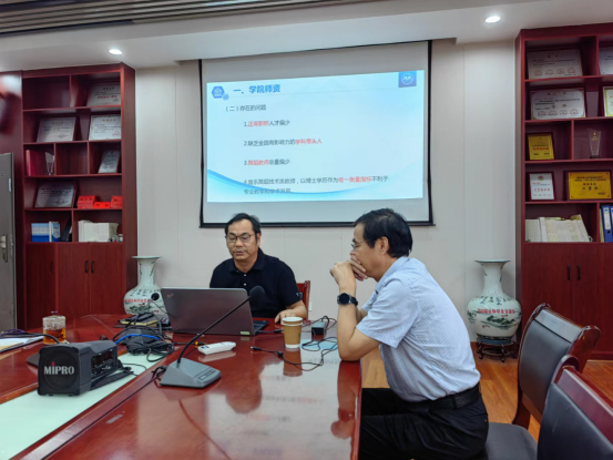学院党委书记邹华秀、院长张应华围绕“全面贯彻落实学校办学新思想新理念高质量推进学院新发展”这一主题分别就党的全面领导、党建引领工程、思想政治教育、干部能力水平,以及本科教育教学、核心指标推进、学习教风建设、产教融合等八个方面的内容,从现状、存在的问题、解决的对策三个方面全面汇报了本次调研的成果。