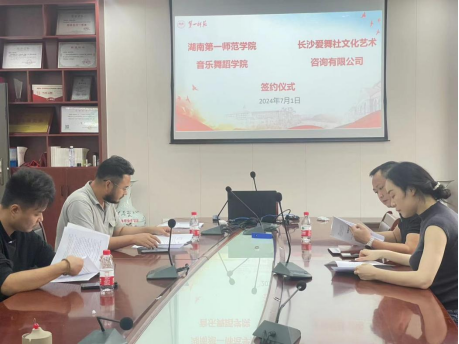 2024年7月1日上午,我院与长沙爱舞社文化艺术咨询有限公司合作的“演教研”项目签约仪式在学院504会议室举行。长沙爱舞社文化艺术咨询有限公司负责人王勇、李文皓,音乐舞蹈学院副院长刘炜、舞蹈学系主任刘琴出席会议。