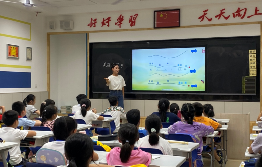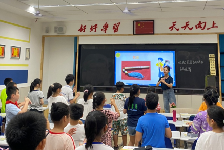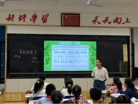 杨垚的授课内容为《美丽的家乡》,她教态自然,思路清晰,通过教师示范、师生合作律动等方式让孩子们沉浸在美妙的音乐中。