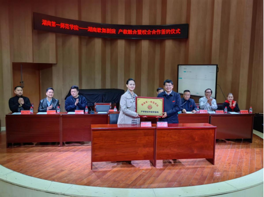 2023年07月11日6月28日下午,音乐舞蹈学院与中央新影中学生频道新时代栏目组合作签约仪式在学院会议室举行。中央新影中学生频道新时代栏目组湖南地区负责人胡熙云、音乐舞蹈学院党委书记邹华秀、副院长郭宇、副院长刘...
