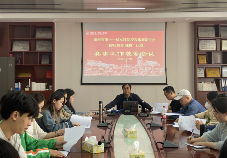 2023年10月24日2023年9月27日下午1点,湖南省“三独”比赛赛前指导教师和选手工作部署与动员会在学院会议室举行。学院院长张应华、副院长刘炜出席会议。张应华院长在会上依次分析了各位选手的作品呈现与存在不足,并...