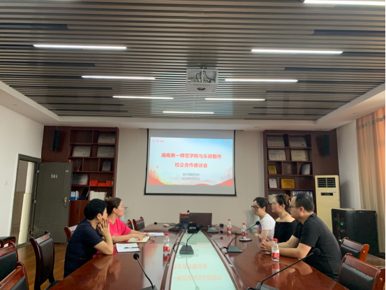2023年06月25日2023年6月21日上午10:00,湖南第一师范学院音乐舞蹈学院党委书记邹华秀、副院长郭宇与乐田智作(湖南)影视技术服务有限公司(以下简称:乐田智作)校企合作负责人蒋灿、新媒体运营总监伊伊在鹤鸣楼504...