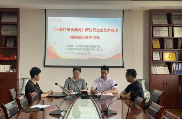 2024年05月14日6月28日下午,音乐舞蹈学院与中央新影中学生频道新时代栏目组合作签约仪式在学院会议室举行。中央新影中学生频道新时代栏目组湖南地区负责人胡熙云、音乐舞蹈学院党委书记邹华秀、副院长郭宇、副院长刘...